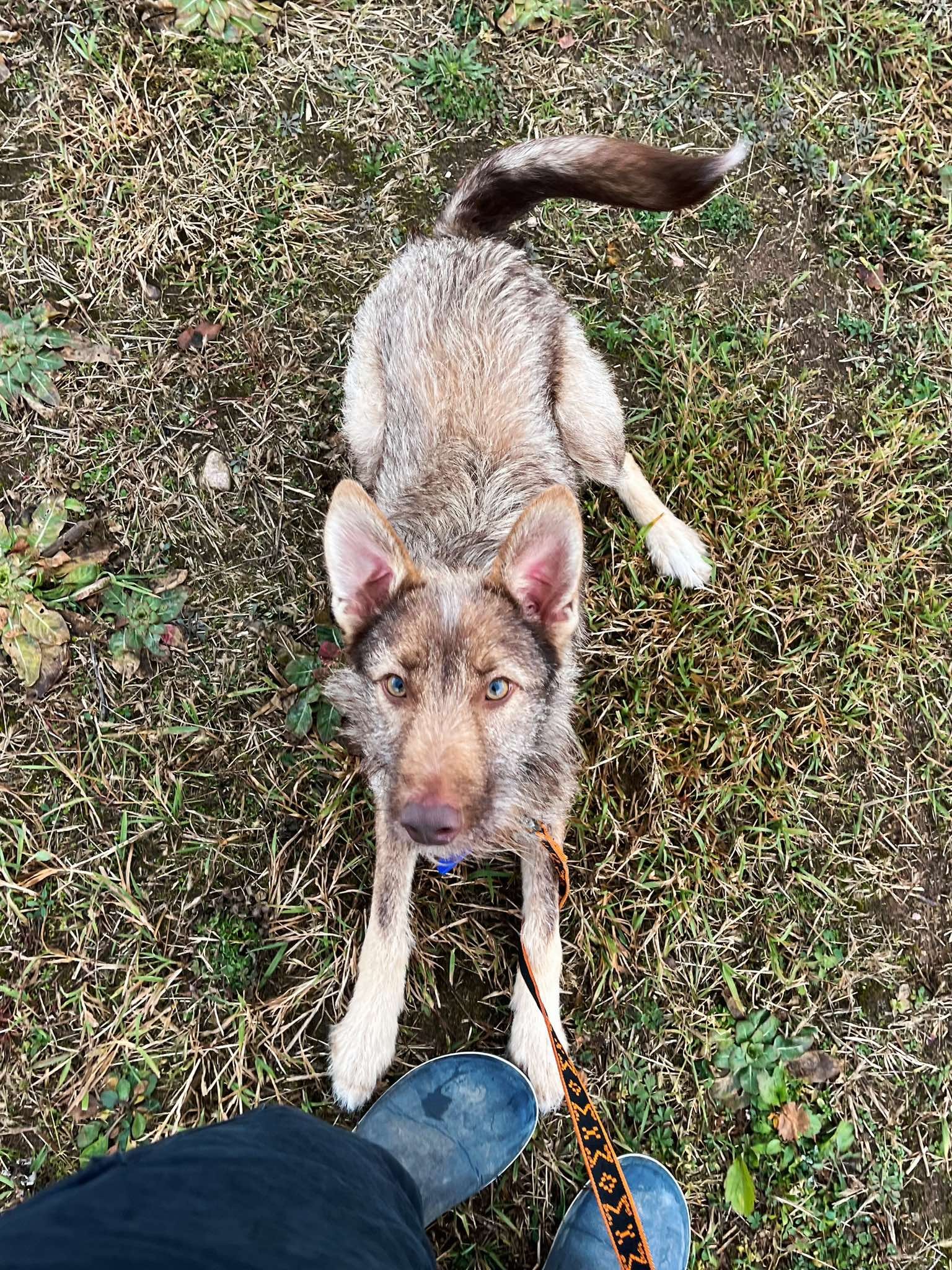 Lipui apie 8-9 mėn. Jaunuolis bailus, nepažįstamus žmones ir objektus aploja. Reikės socializacijos, kantrybės ir pasiruošusių dirbti šeimininkų. Prie pavadėlio dar tik pratinasi, išsigandęs labai tempia.